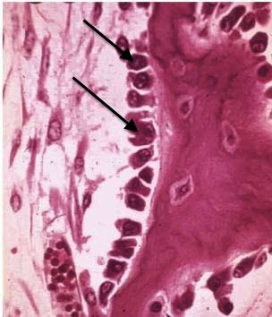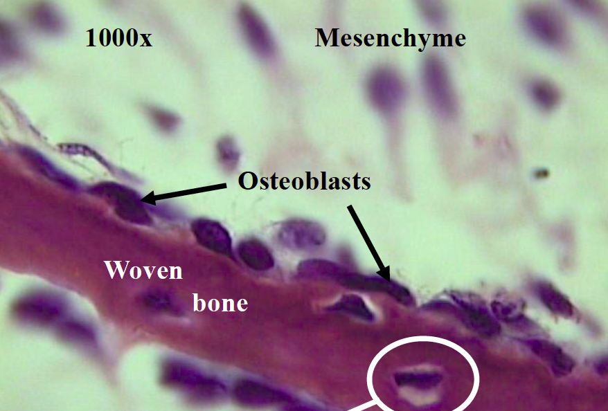 Identify the osteoblasts in this woven bone
