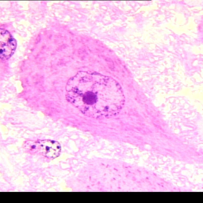 Neuron - see the cell body (parikaryon) containing nucleus, nucleolus, dendrites, and axon