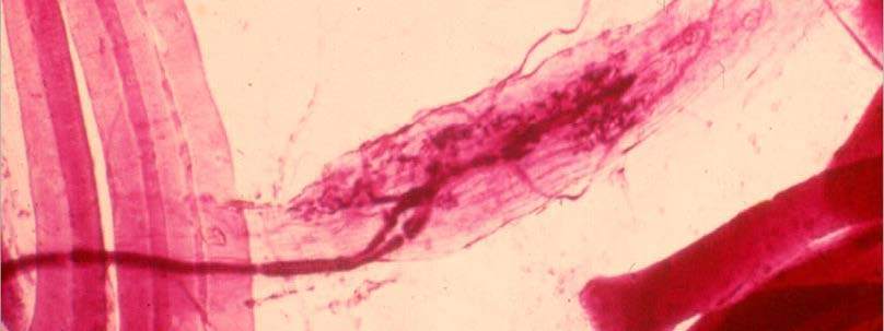 What is the pigment that the top arrow is pointing to?