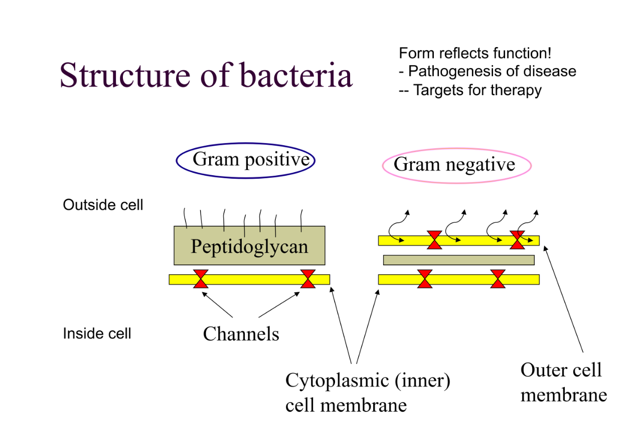 Outline the structure of gram negative and gram postive bacteria (vvvvvvvvv IMPT!!!)
