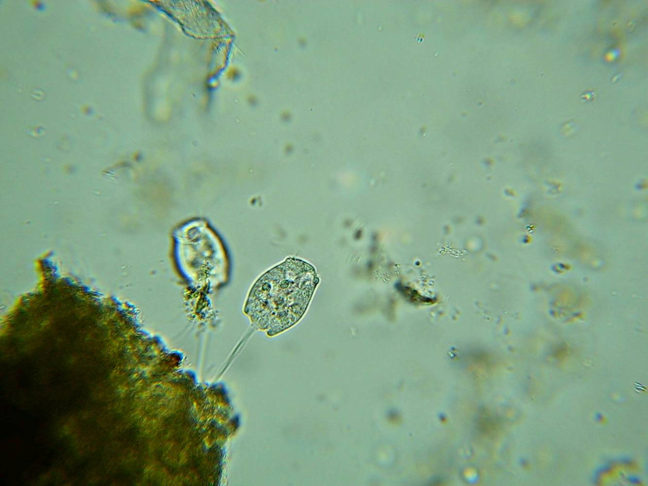 Flagellate is very clear but hard to find. Possible flagellate cyst on left side, single wall