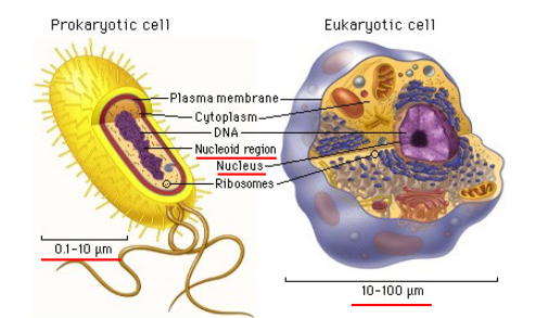 Differences in strucutre between prokaryotes and eukaryotes