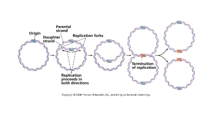 – Replicates in 2 directions (bi-directional replication)