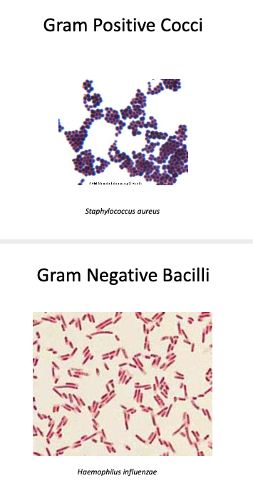 – Gram negative: pink / reddish – Gram positive: purple