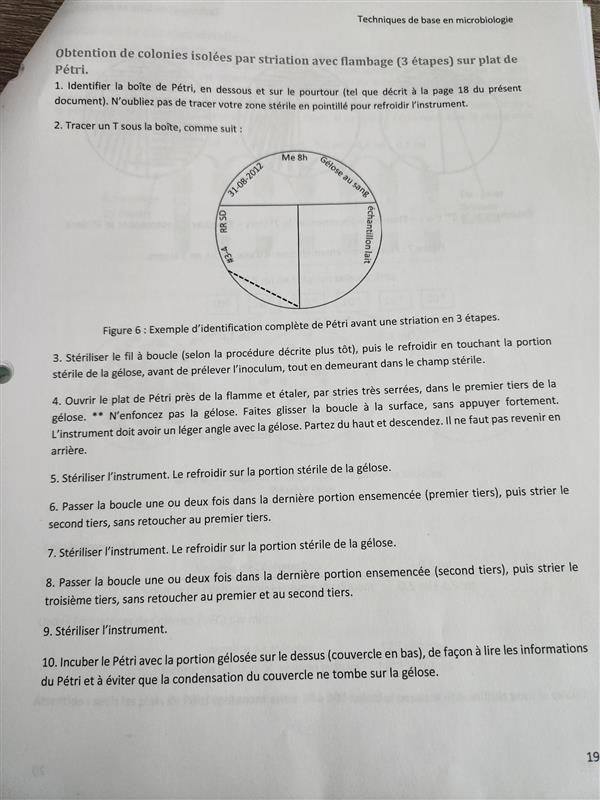 5.Toucher, à l’aide de l’aiguille ou de la boucle stérilisée, la colonie sélectionnée. Il ne faut pas trop prendre de bactéries.