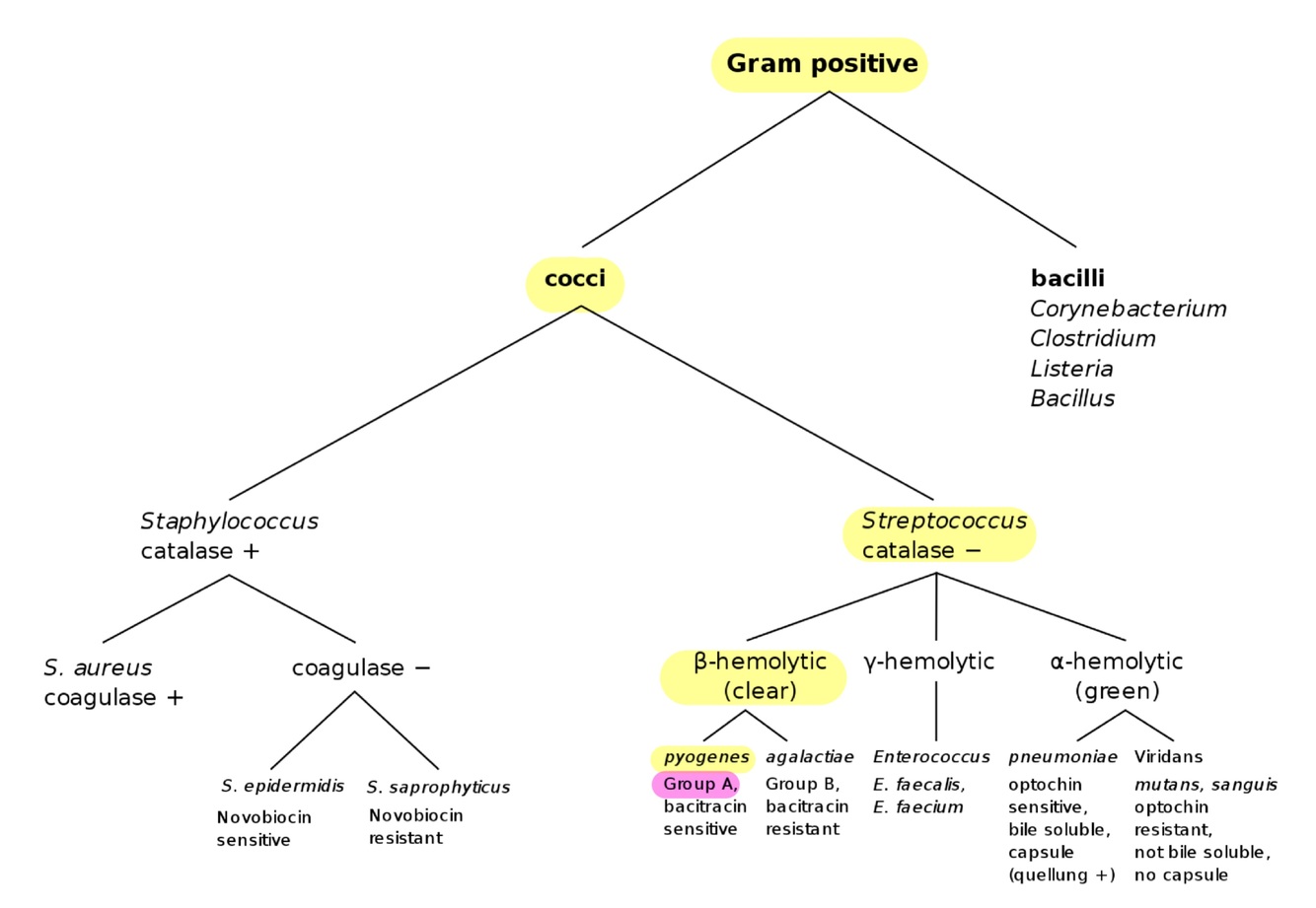 Beta (Lancefield A, B,C + G): complete lysis (clear)