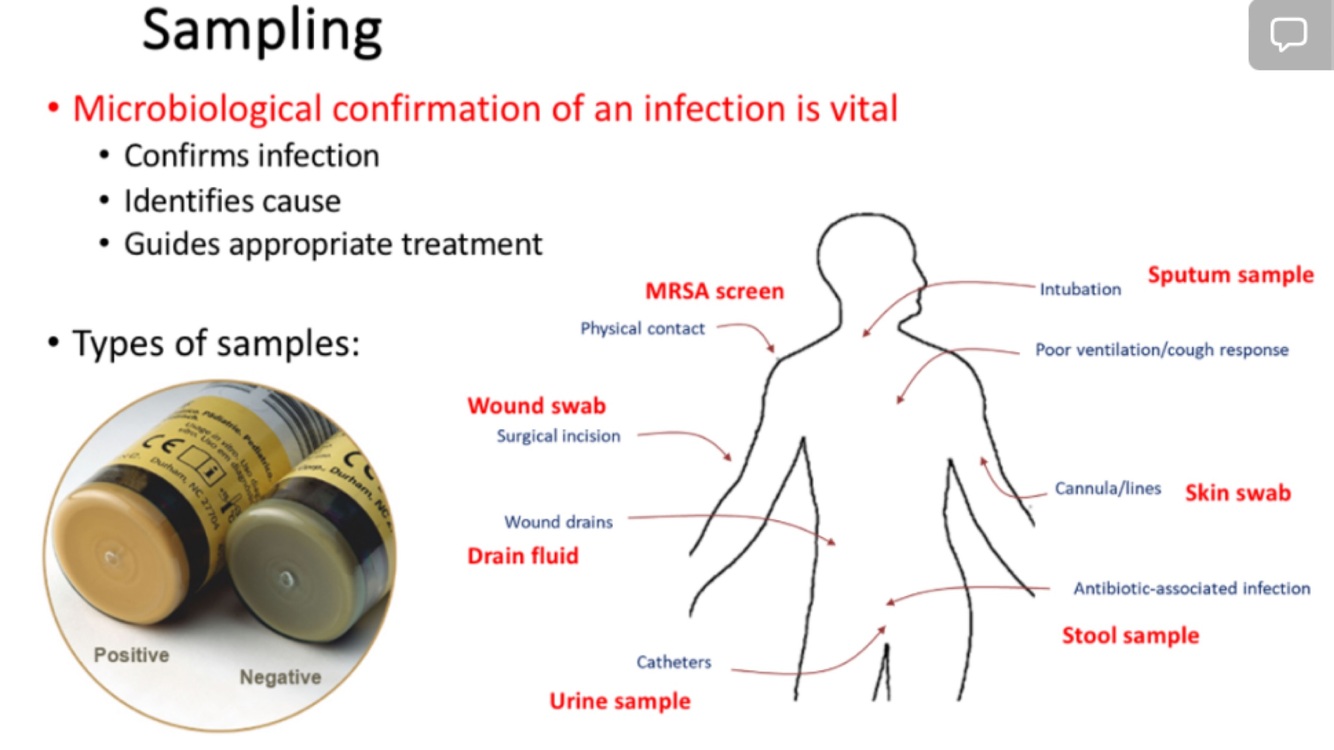 - Cannulas, pressure sores, surgical site infection