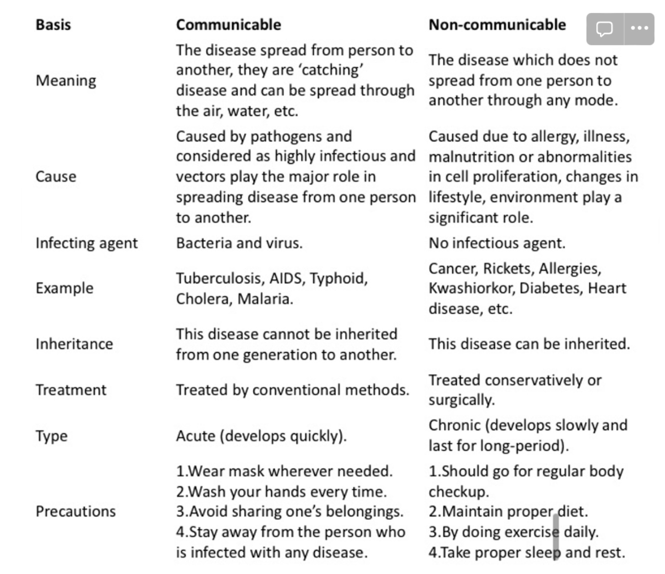 Communicable vs non-communicable diseases