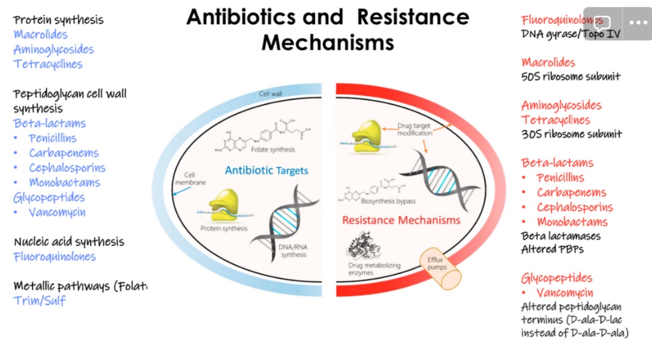 What are the targets of different antibiotics resistance mechanisms?
