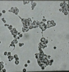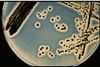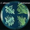 The organism seen here on this cornmeal plate looks similar to Candida glabrata (which will not have spaces between colonies) and it is UREASE positive and produces MELANIN on bird seed agar?