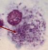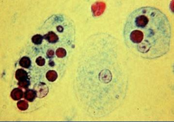 Cannot distinguish E. histolytica/dispar unless RBCs seen in trophozoites