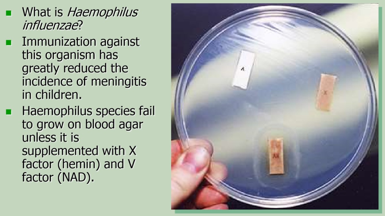 Haemophilus species fail to grow on blood agar unless it is supplemented with X factor (hemin) and V factor (NAD).