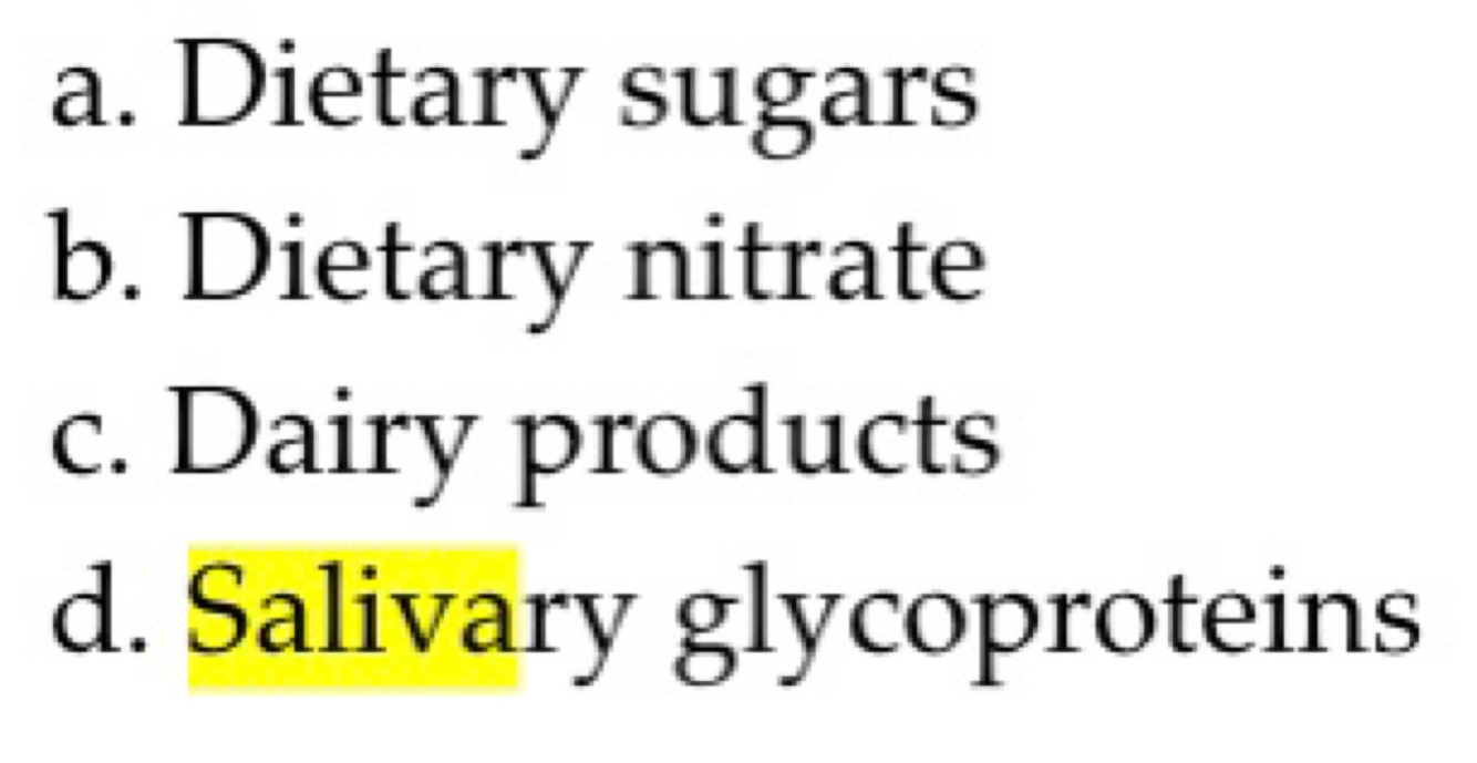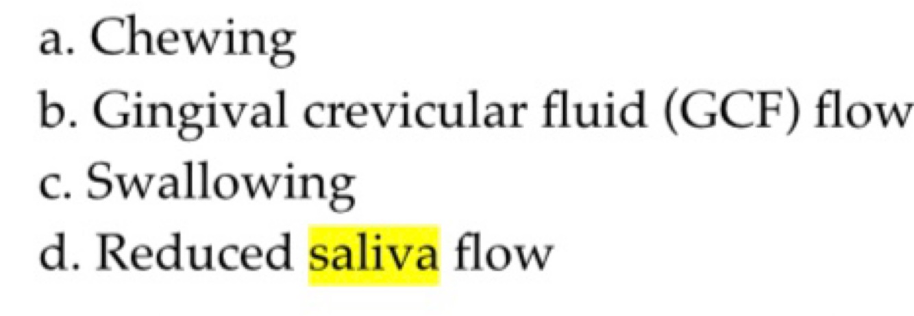 Which of the following is not a factor by which saliva influences the microbiota of the mouth: Formation of condition film. Providing proteins and glycoproteins for bacterial growth. Providing a neutral pH and acting as a buffer for microbial growth. Delivering neutrophils and complement to kill microorganisms.