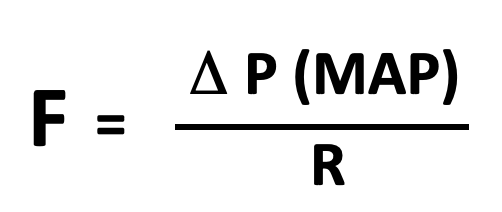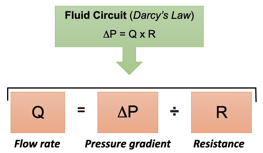 Give an equation relation flow rate, pressure gradient and resistance