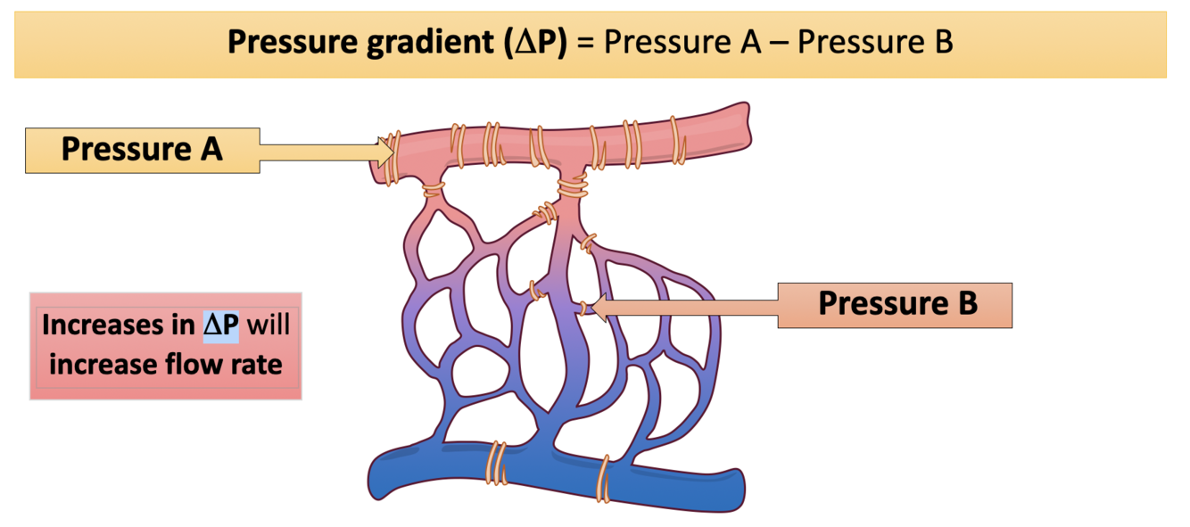 Increased ΔP will increase blood flow rate