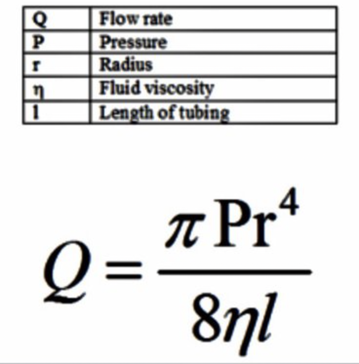How can you relate flow rate, vessel length,pressure, vessel radius and blood viscosity