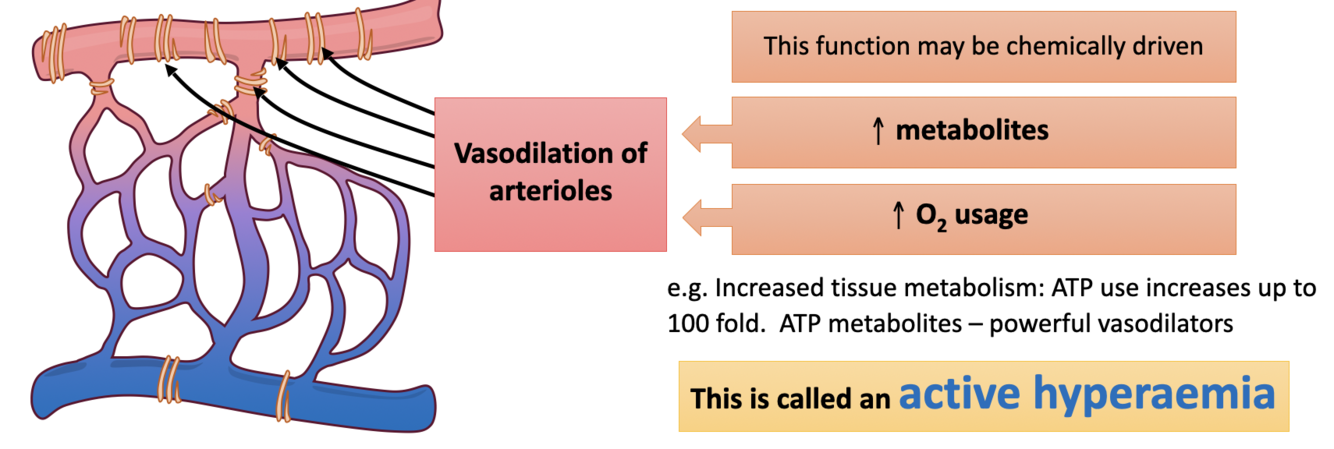 What is arteriolar vasodilation normally driven by and what is another term for it?
