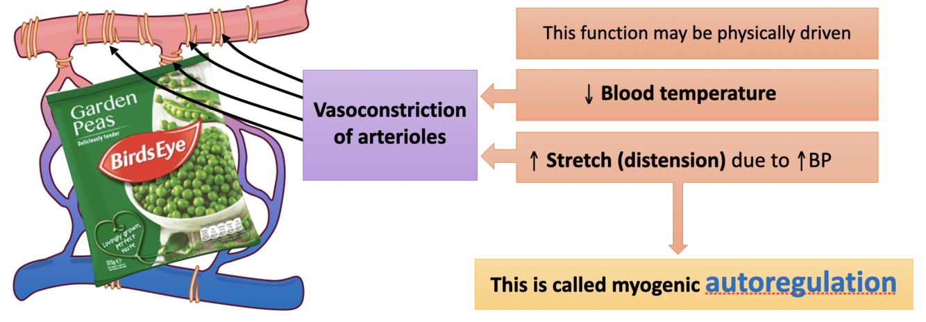Vessel senses increased pressure, in turn constricts the vessel, increasing resistance and reducing blood pressure back to normal