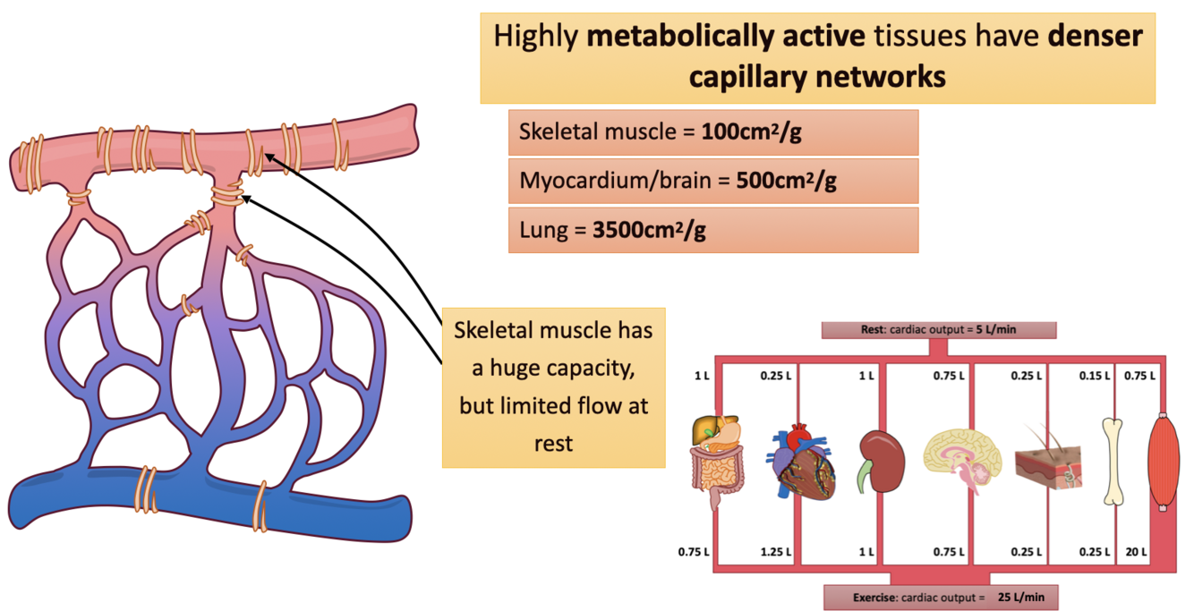 More dense capillary networks in more metabolically active tissue