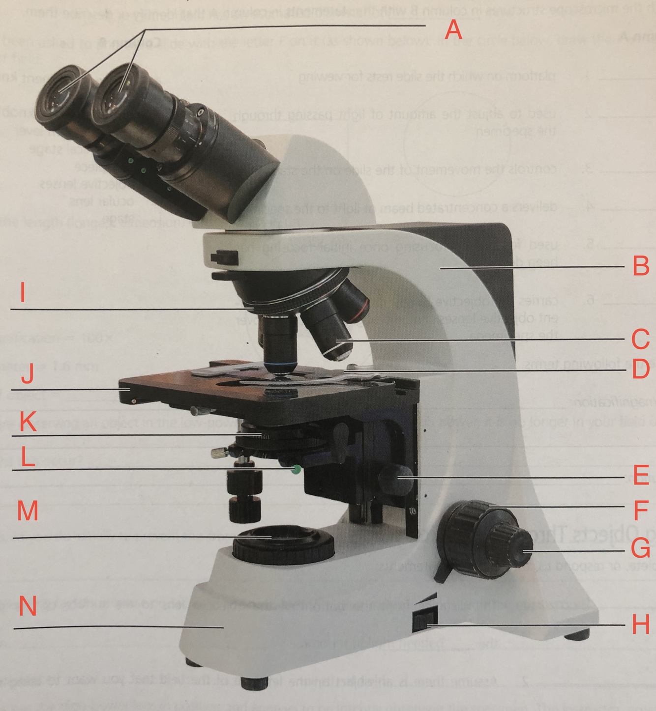 G. fine adjustment knob