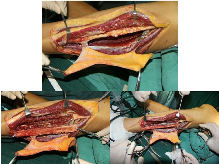 The common peroneal nerve arises from the sciatic nerve, running along the biceps femoris toward the posterior fibular head. It wraps around the proximal fibula at the neck, continuing laterally through a fibrous tunnel comprised of the aponeurosis of the peroneus longus, lateral gastrocnemius, and soleus muscles. Under the peroneus longus, the nerve branches into the superficial and deep branches; the superficial branch runs under the peroneus longus to innervate the peroneus longus and peroneus brevis, and it provides cutaneous sensation for the foot dorsum. The superficial peroneal nerve can be injured during anterior dissection for the skin paddle at the mid lower leg.