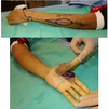 The radial forearm adipofascial perforator flap is a reliably thin, pliable flap. As such, the flap is a good option for reconstruction of the distal upper extremity when a thin flap is desired, such as for palmar/dorsal hand coverage, revision carpal tunnel/median nerve surgery, and radioulnar synostosis surgery. Other advantages of this flap include avoiding the need to sacrifice the radial artery, shorter operative time compared with free tissue transfer, and low donor morbidity. The vascular supply to the flap is a series of roughly 10 small 0.3- to 0.9-mm septocutaneous radial artery perforators found in the septum between the flexor carpi radialis and the brachioradialis tendons. The most distal perforator arises approximately 1.5 cm proximal to the radial styloid. Therefore, the pivot point for this flap is safely 4 cm proximal to the radial styloid. Since the flap is supplied by the adipofascial perforating vessels superficial to the radial artery, the inclusion of muscle in the flap design is not reliable. During flap elevation, the superficial radial nerve and lateral antebrachial cutaneous nerves are identified and preserved, but are not included into the flap.