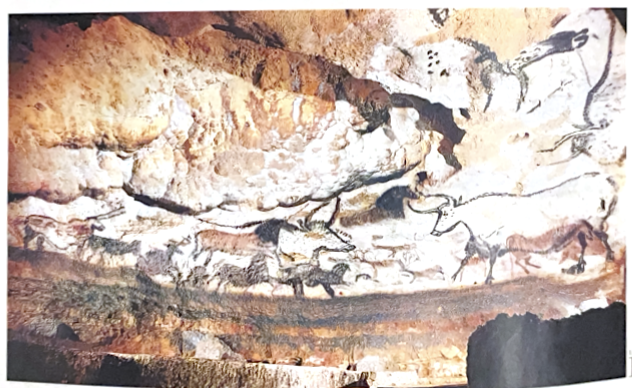 6) Animals seen, Horses, bulls. Used Twisted perspective (head in profile but the horns from the front). Scences in lascaux cave is a puzzle.