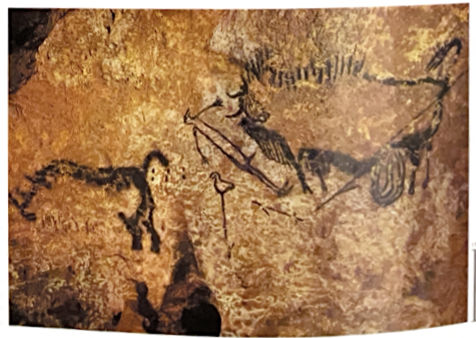 1) Rhinoceros, wounded man & disemboweled bison (Fr. Lascaux cave, France)