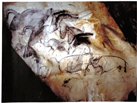 6) aurochs, 2 rhinoceroses attacking each other, suggesting the painter intended a narrative. Proves that paleolithic art did not evolve from simple to more sophisticated representions.