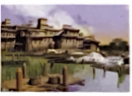 6) a town with rectangular houses neatly laid out in rows (probably representing Catal Hoyuk), behind the town is a mountain. landscape represents a reoccuring event. Shows how the settlement looked during a volcanic eruption. (it is the first know landscape and a picture of a natural setting with no narrative content)