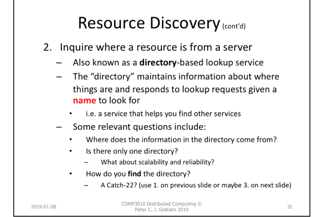Resourch Discovery: How does your program know what computer to connect to and what services/process are available to it?