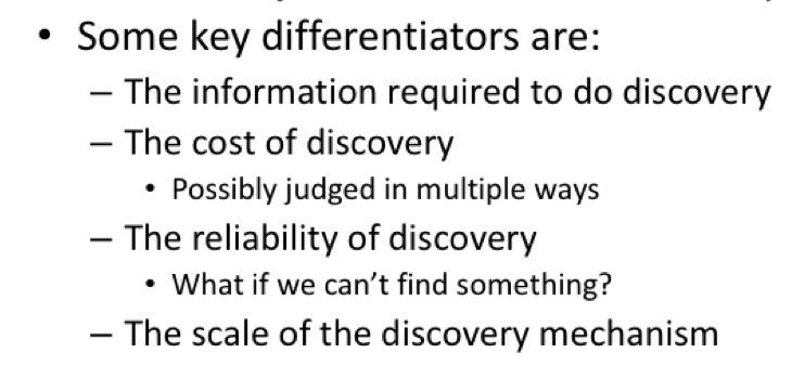 What are the factors to consider for resource discovery protocols?
