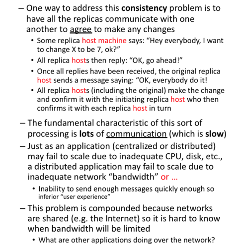 More communication is usually not the answer, because in network terms, latency matters and makes distributed systems seem slow