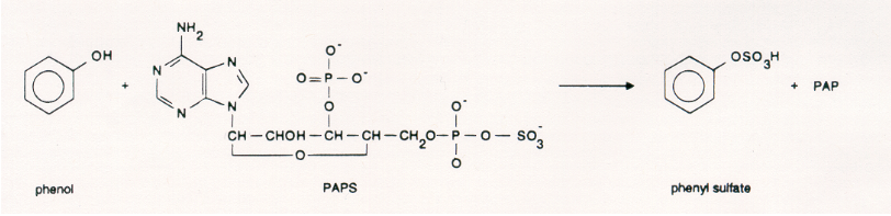 substrate is phenolic drugs/metabolites. co-factor is PAPS which is converted to PAP and recycled back to PAPS.