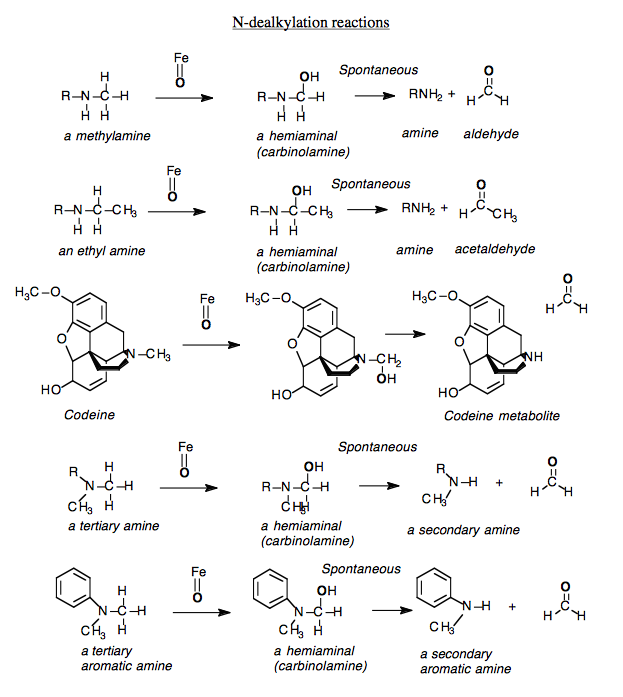 cleave alkyl groups from alkylamines to make amine and aldehyde/ketone fragment.