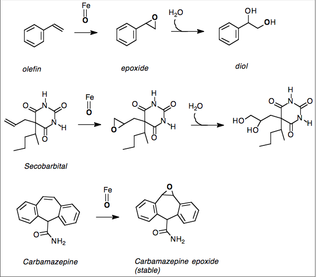 eventually reacts with water to give diol through enzymes called epoxide hydrolases.