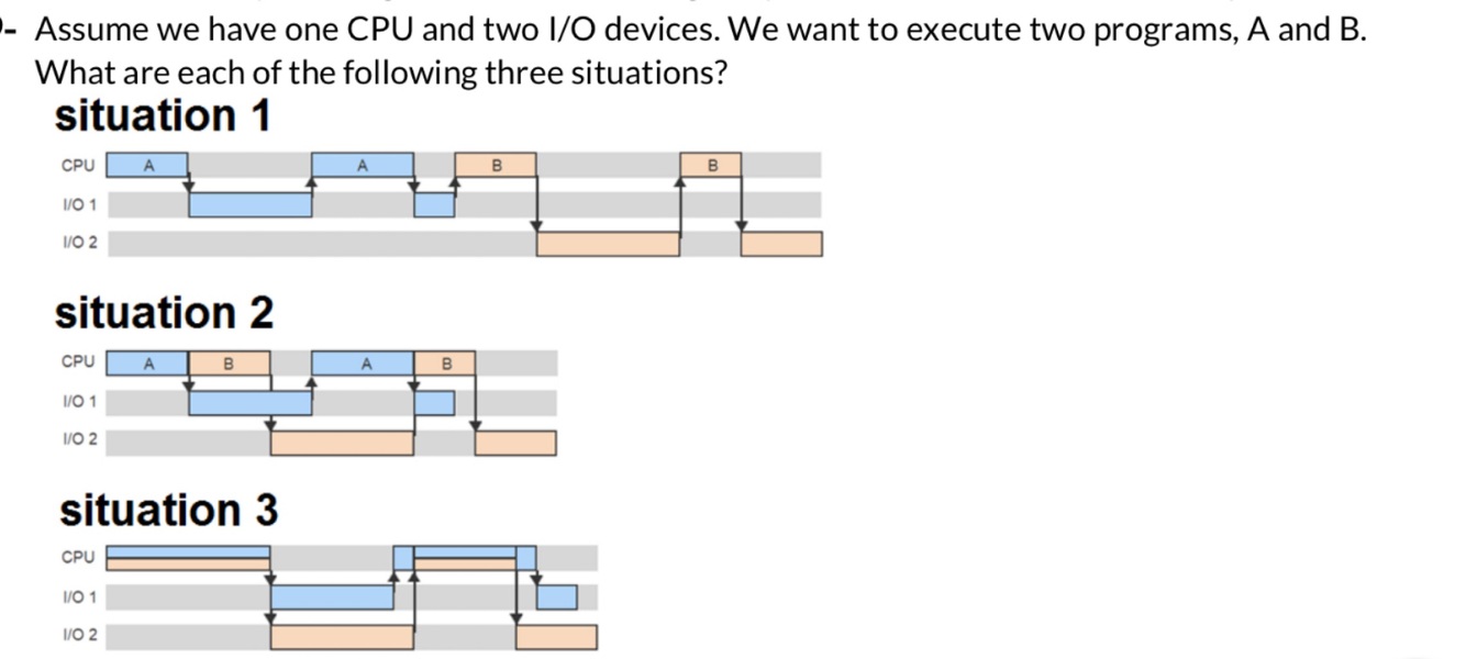 Situation 1 is a sequential system. First, program A is executed, and then program B.
