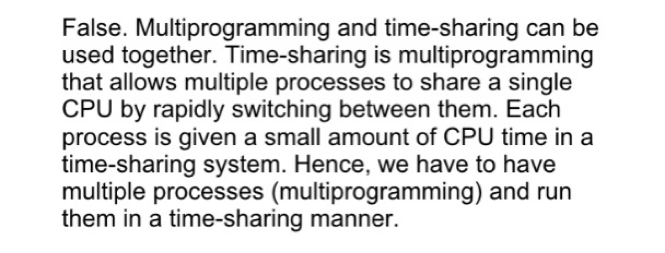 Multiprogramming and time-sharing are not used together. (True or False?)