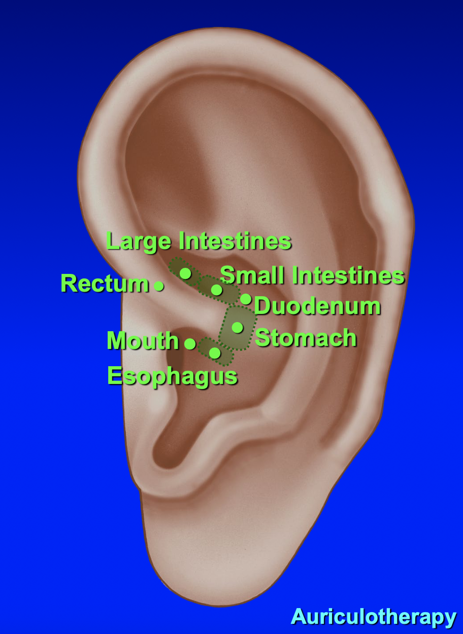 face, TMJ, jaw, and dental analgesia points on
