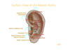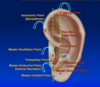 occiput, temples, forehead ear points