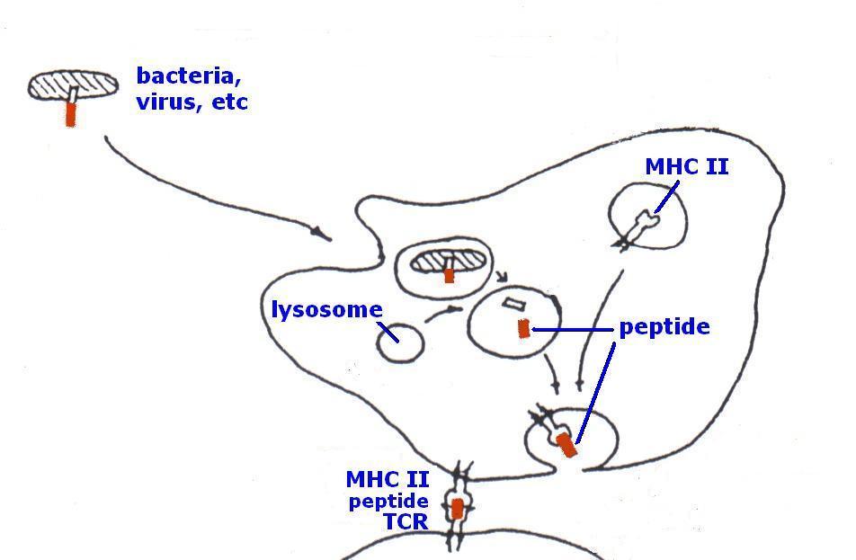Steps in phagocystosed protein being expressed on MHC II molecule