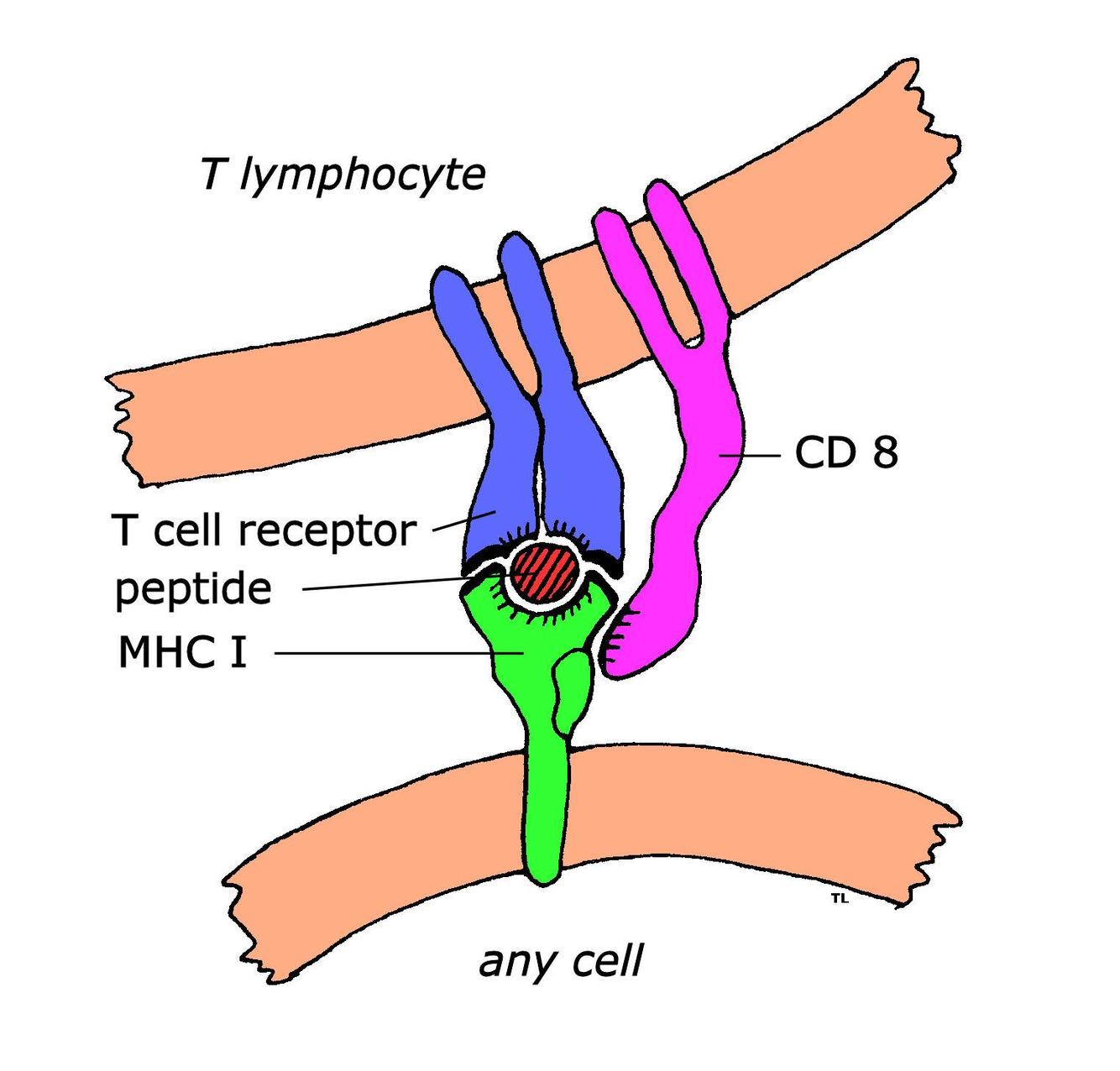 Do you recall the term for the type of molecule that specifically binds the peptide displayed on an MHC molecule?
