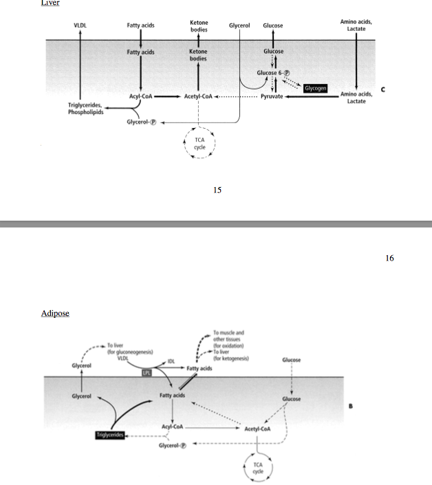 Results: adipose hydrolyzing TAG to produce free fatty acid. free fatty acid uptake in liver to form ketone bodies. liver is hydrolyzing glycogen to make glucose. liver is running glucoeneogenesis.