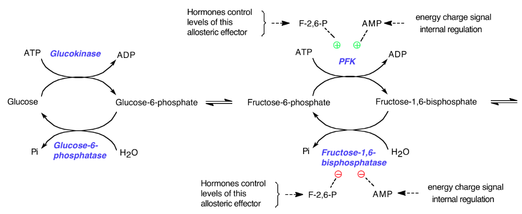 Control of glycolysis and gluconeogenesis in the liver by hormones
