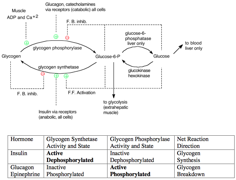 Control of glycogenolysis in muscle and liver
