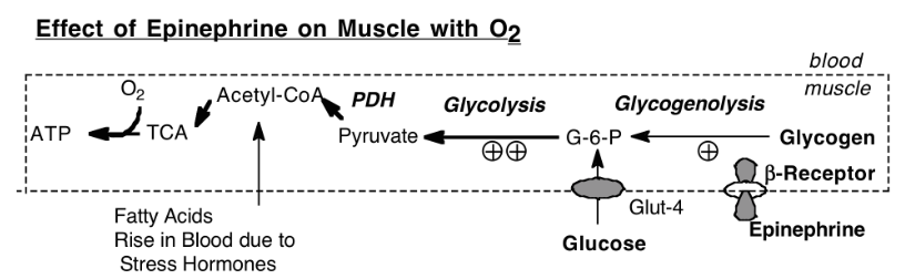 Effect of epinephrine on muscle with O2