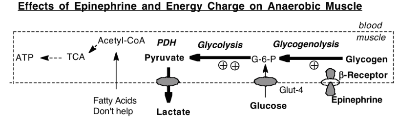 Effect of epinephrine and energy change on anaerobic muscle.