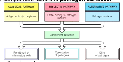 Initiation and 3 Main outcomes of Complement system