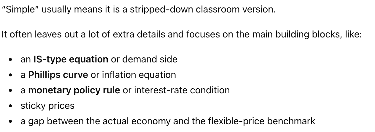 what is the simple sticky-price New Keynesian model