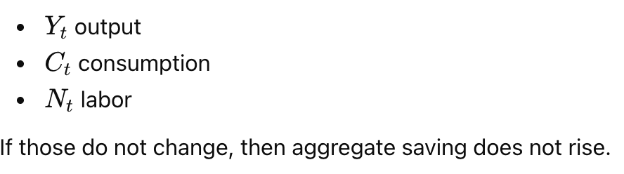 In the equilibrium of the simple sticky-price New Keynesian model, an increase in current productivity causes aggregate saving to increase.